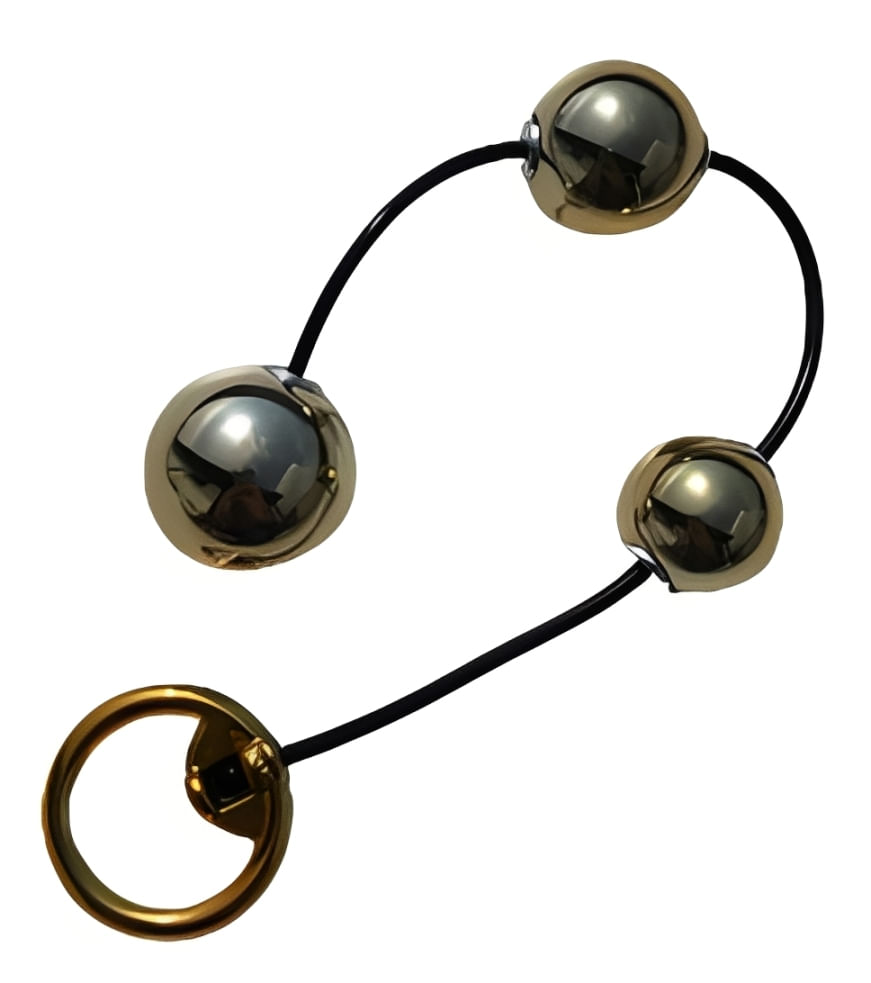 Medidas: Comprimento total de 15 cm, Diâmetro bolinhas: 1ª 26 mm, 2ª 23 mm e 3ª 19 mm (medidas aproximadas).