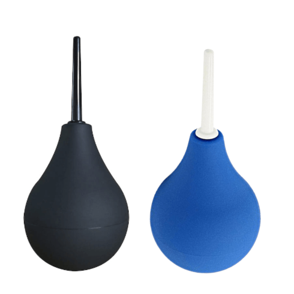 Ducha unissex para limpeza anal e vaginal, composta por 1 aplicador e bomba para sucção da água.